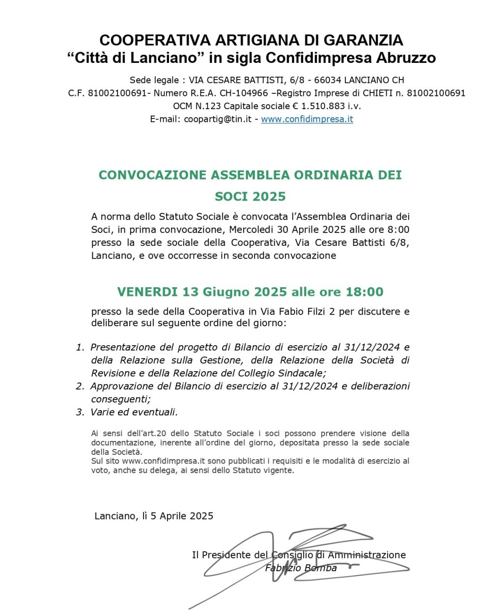 Si rinnova anche quest’anno l’appuntamento assembleare per l’approvazione del Bilancio d’esercizio chiuso al 31.12.2024 di CONFIDIMPRESA ABRUZZO.