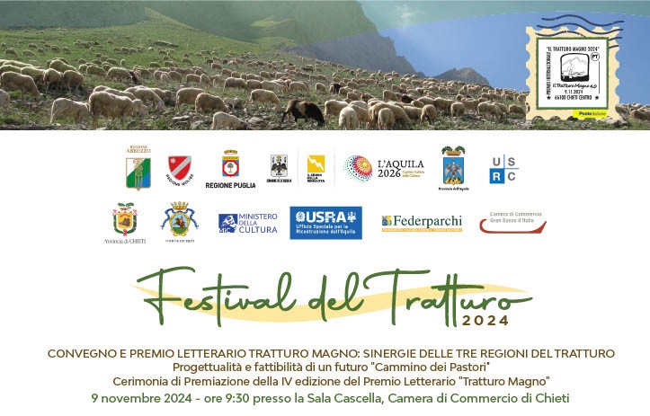 Sabato 9 novembre a partire dalle 14,30, all’interno del Palazzo della Camera di Commercio di Chieti, si terrà la cerimonia di premiazione del Premio letterario Tratturo Magno, con opere inedite in prosa, poesia e saggistica. Anche quest’anno l’Associazione Il Tratturo Magno 4.0 ribadisce la portata ed il respiro del Concorso letterario, che propone la rigenerazione dei luoghi della transumanza attraverso la letteratura.